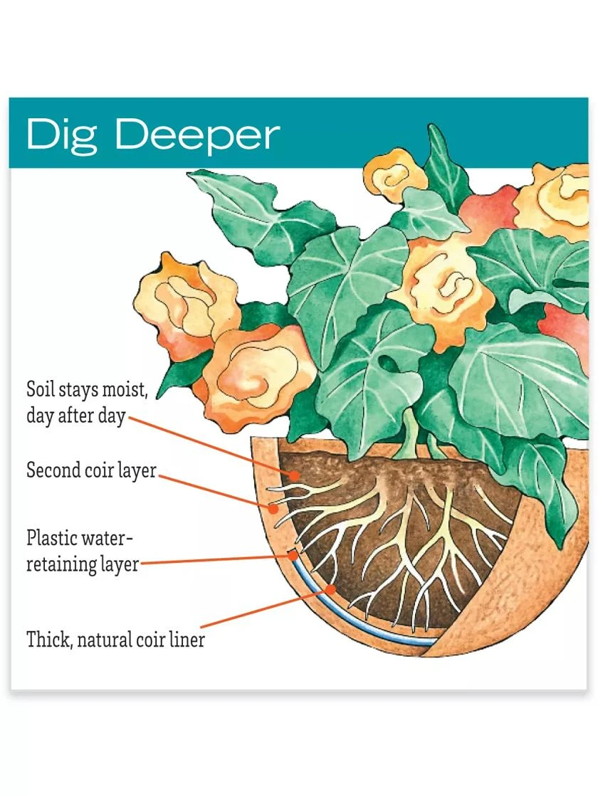 - Natural coir liner contains a water-retaining layer