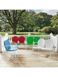 Charming and nostalgic, the Tulip 5-Piece Dining Set combines vintage style with classic function. Four scalloped chairs in vibrant colors surround a simple metal dining table for a fun and functional outdoor dining experience. The retro silhouette of each chair sits atop a cantilever base that provides a relaxed seat for dining al fresco.